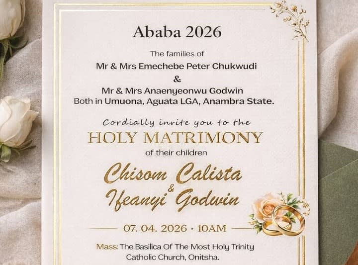 You are cordially invite you to the HOLY MATRIMONY of our member, Ifeanyi Godwin Anaenyeonwu Date: April, 7,…